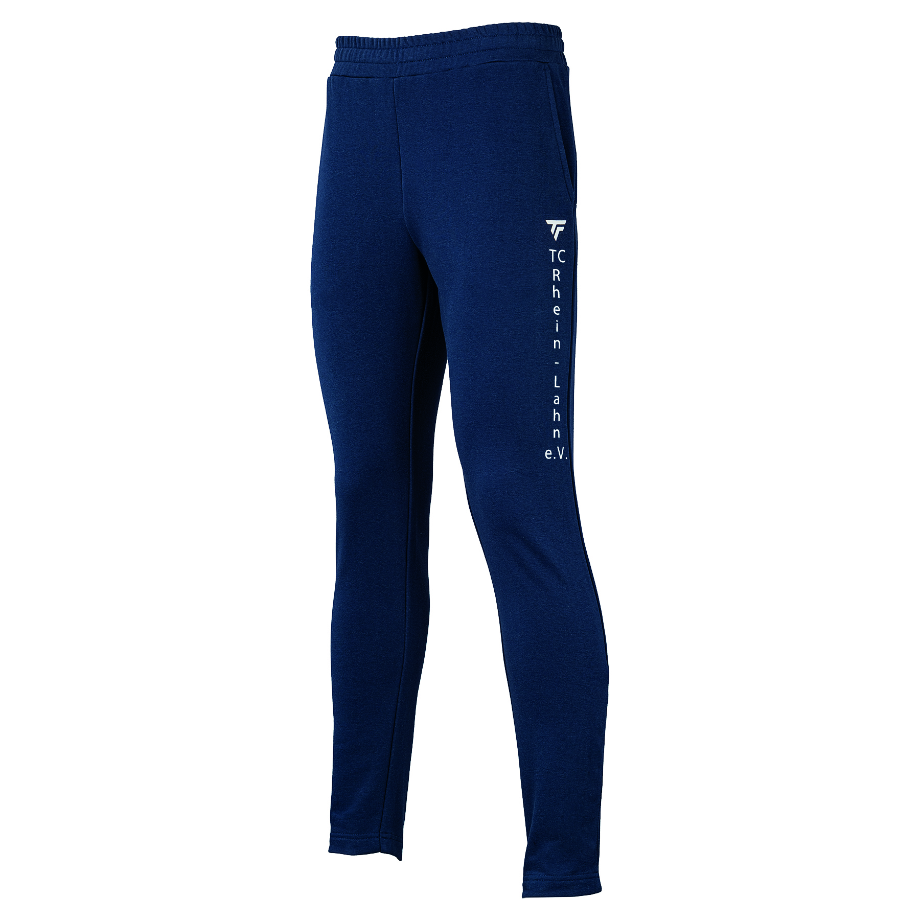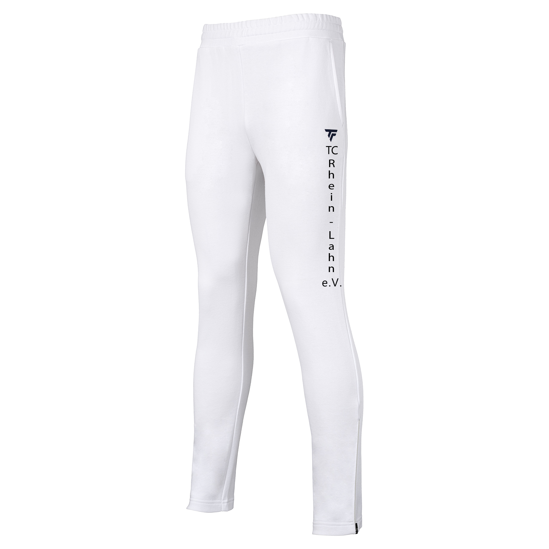 Tennis Tecnifire Club Damen Hose mit Logoaufdruck aus Baumwolle und Polyester, mit Hosentasche und Reißverschluss am Fußende. Farbe: Marine, Weiß