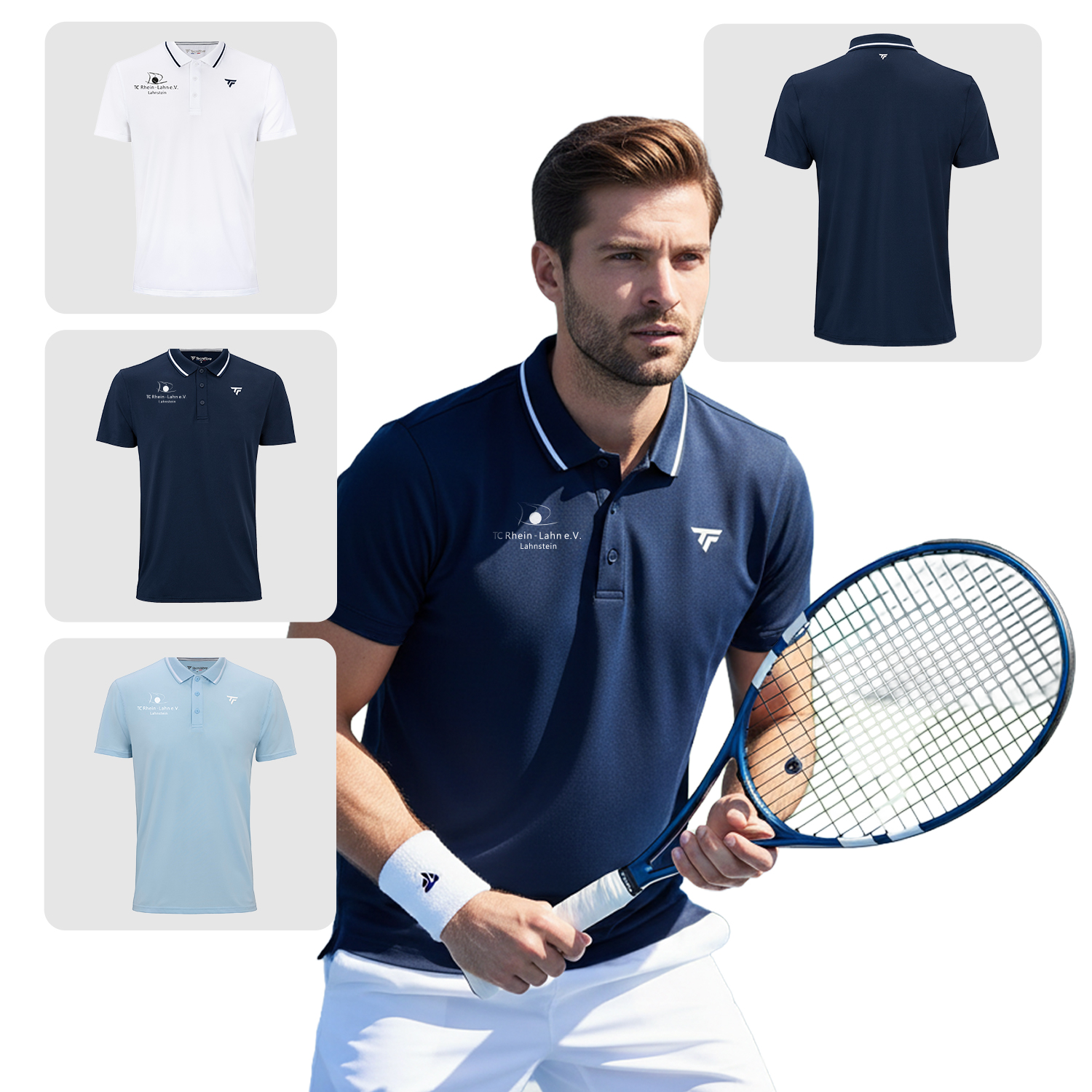 Tecnifibre-Logo und Vereinslogo auf der Brust .